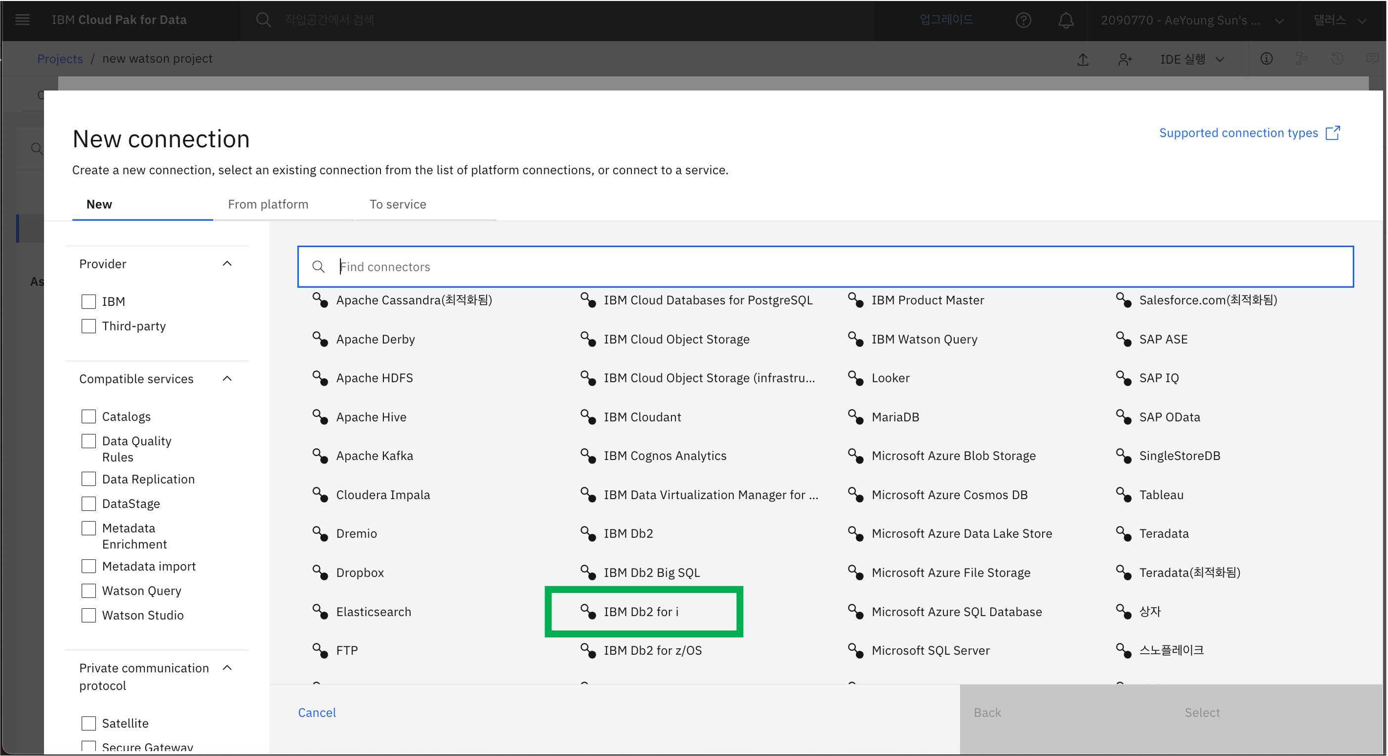 이번 글에서는 Cloud Pak for Data as a Service 에서 Db2 for i 에 연결하는 과정은 어떻게 되는지를 살펴보고자 합니다.