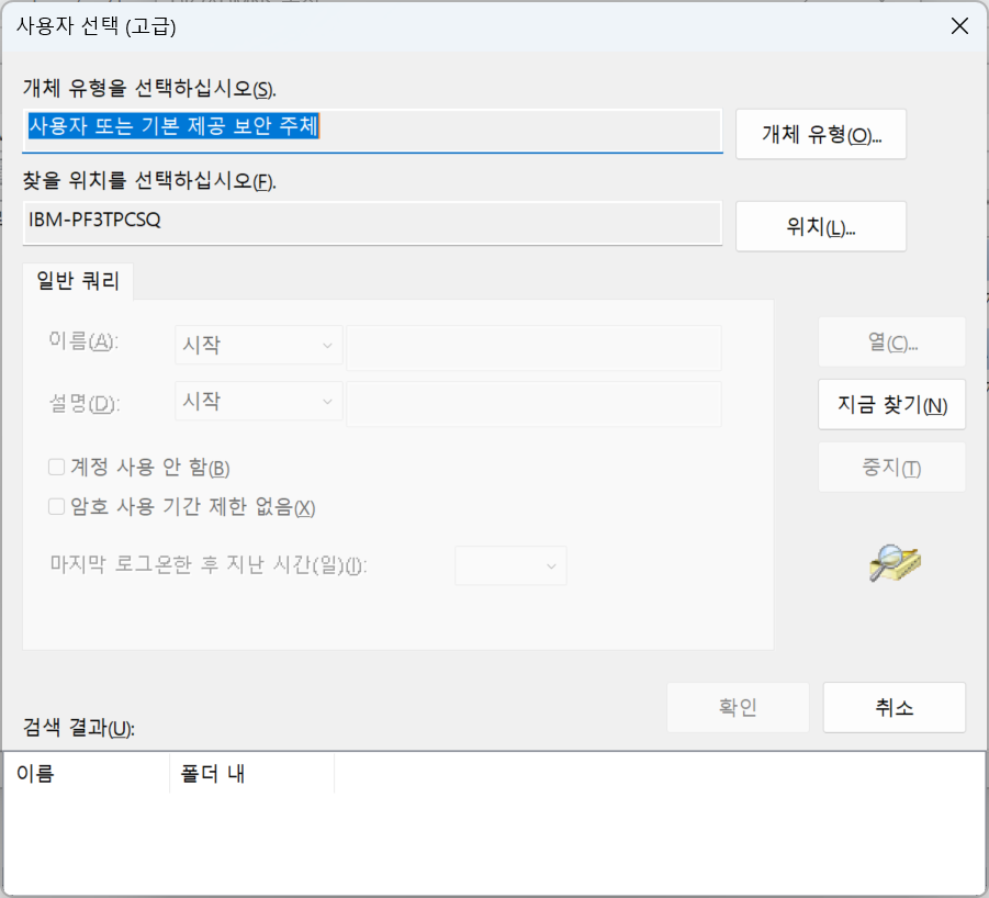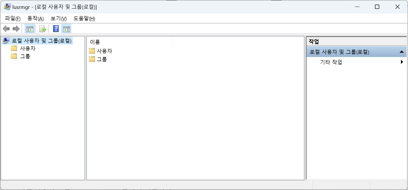 (1) 윈도우버튼을 누른 후, lusrmgr.msc 를 실행합니다.