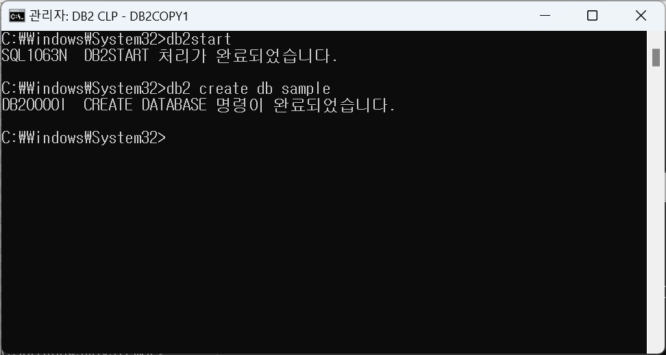 (3) db2clp 창에서 아래의 명령을 수행합니다.