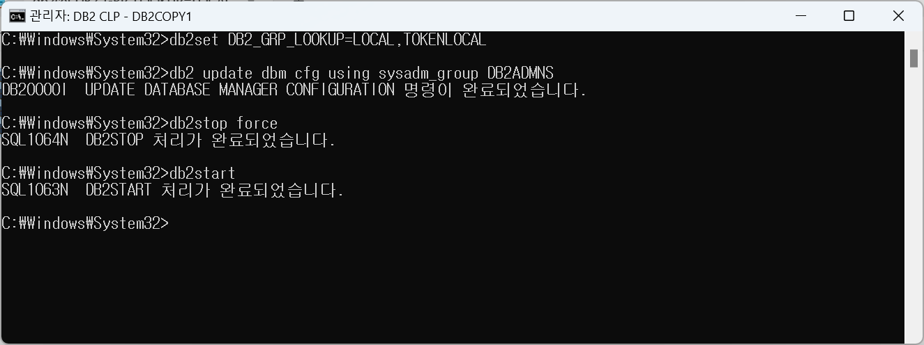이상으로 윈도우 환경에서 Db2 구성할 때 발생되는 SQL1092N 오류의 해결방법에 대해 알아보았습니다.